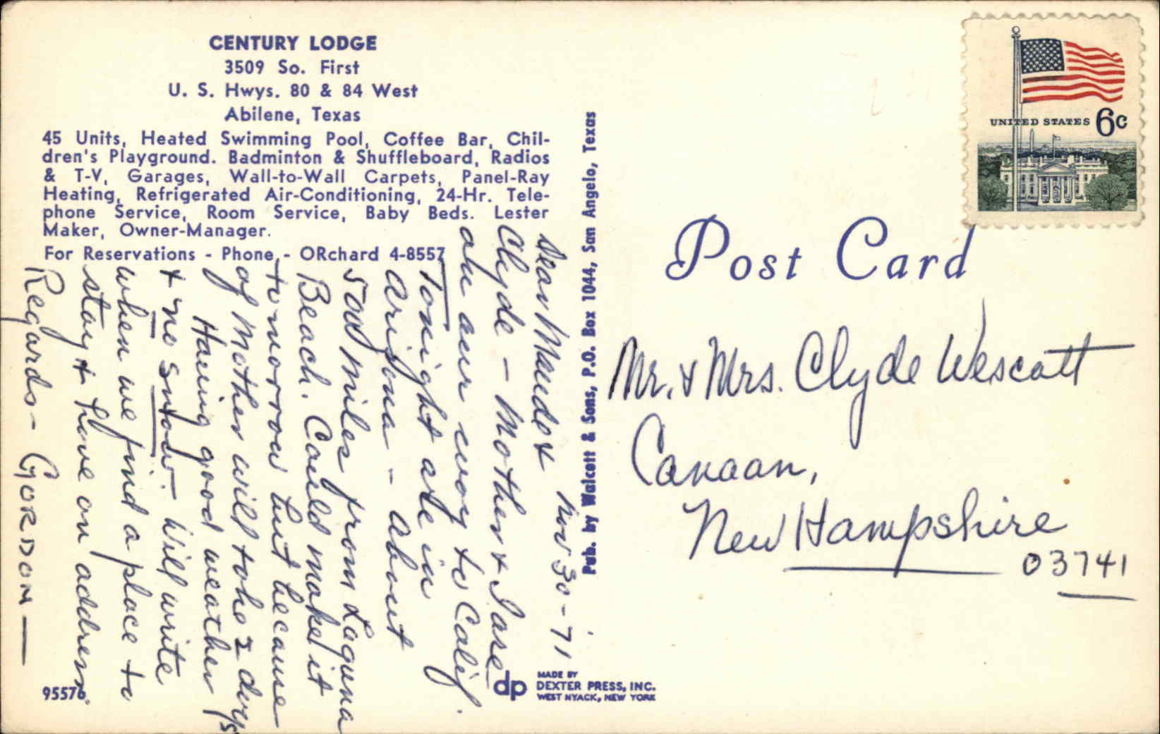Texas TXAbilene Texas TX Motel PostcardMotel SKU: 100009415$8.95 Format: Printed Condition: VG-EXC (Possible Minor Flaws-Please See Scans) Postage: Unposted City: Abilene State: Texas TX Country: USA 1 in stock Abilene Texas TX Motel Postcard quantity Add to cart Reviews (0) Reviews There are no reviews yet. Only logged in customers who have purchased this product may leave a review. Related products Hempstead Texas TX Motel Postcard $6.95 Add to cart San Marcos Texas TX Motel Car Station Wagon Postcard $6.95 Add to cart El Paso Texas TX Motel Swimming Pool Postcard $4.95 Add to cart