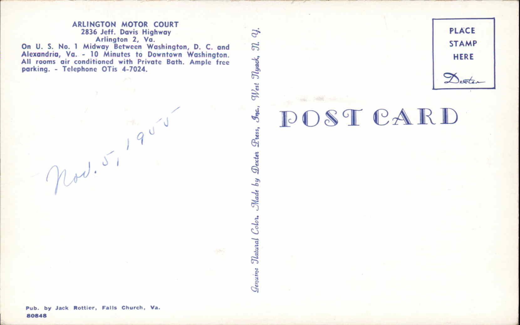 Arlington Virginia VA Motel Postcard