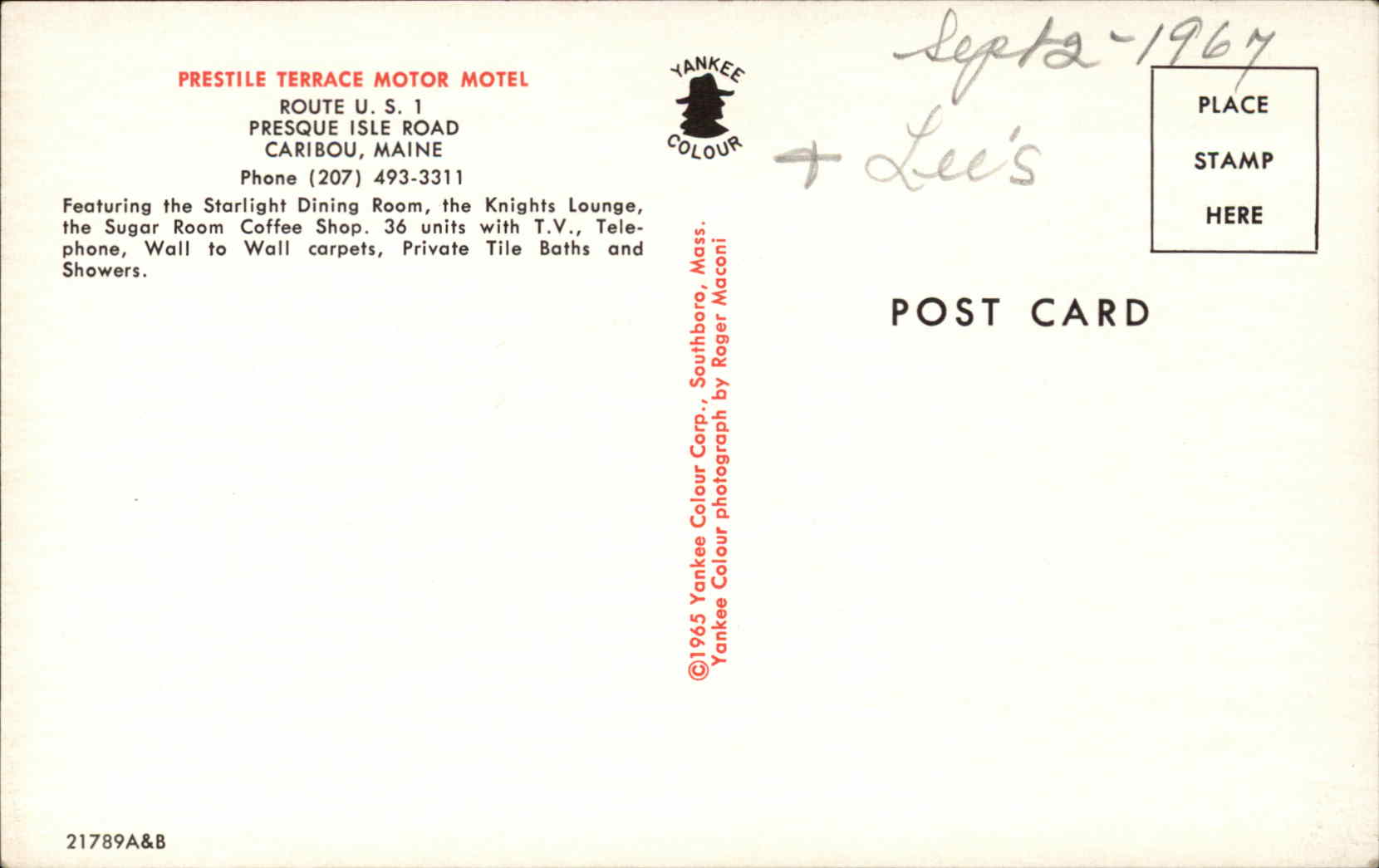 Maine MECaribou Maine ME Motel Interior Station Wagon PostcardInterior, Motel, Station Wagon SKU: 100007769$4.95 Format: Printed Condition: VG-EXC (Possible Minor Flaws-Please See Scans) Postage: Unposted City: Caribou State: Maine ME Country: USA 1 in stock Caribou Maine ME Motel Interior Station Wagon Postcard quantity Add to cart Reviews (0) Reviews There are no reviews yet. Only logged in customers who have purchased this product may leave a review. Related products Freeport Maine ME Library Postcard $6.95 Add to cart Yarmouth Maine ME Train Station Postcard $8.95 Add to cart Waterville Maine ME Train Station Train Postcard $8.95 Add to cart