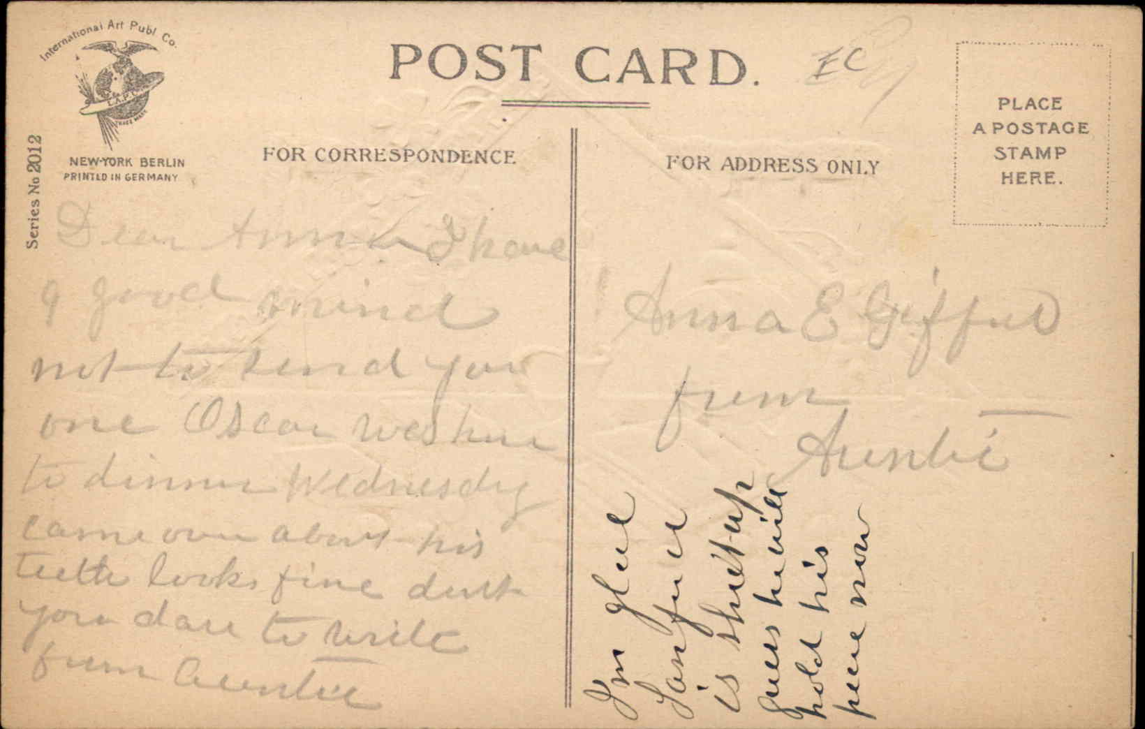 New Year’s Alarm Clock Candle Wallet Coin Clover Embossed International Art Publishing Co Postcard
