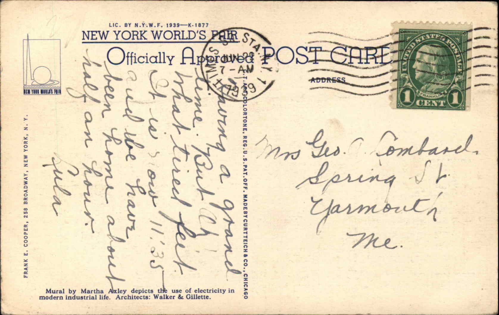 New York City New York NY New York World’s Fair 1939 Electricity Linen Postcard