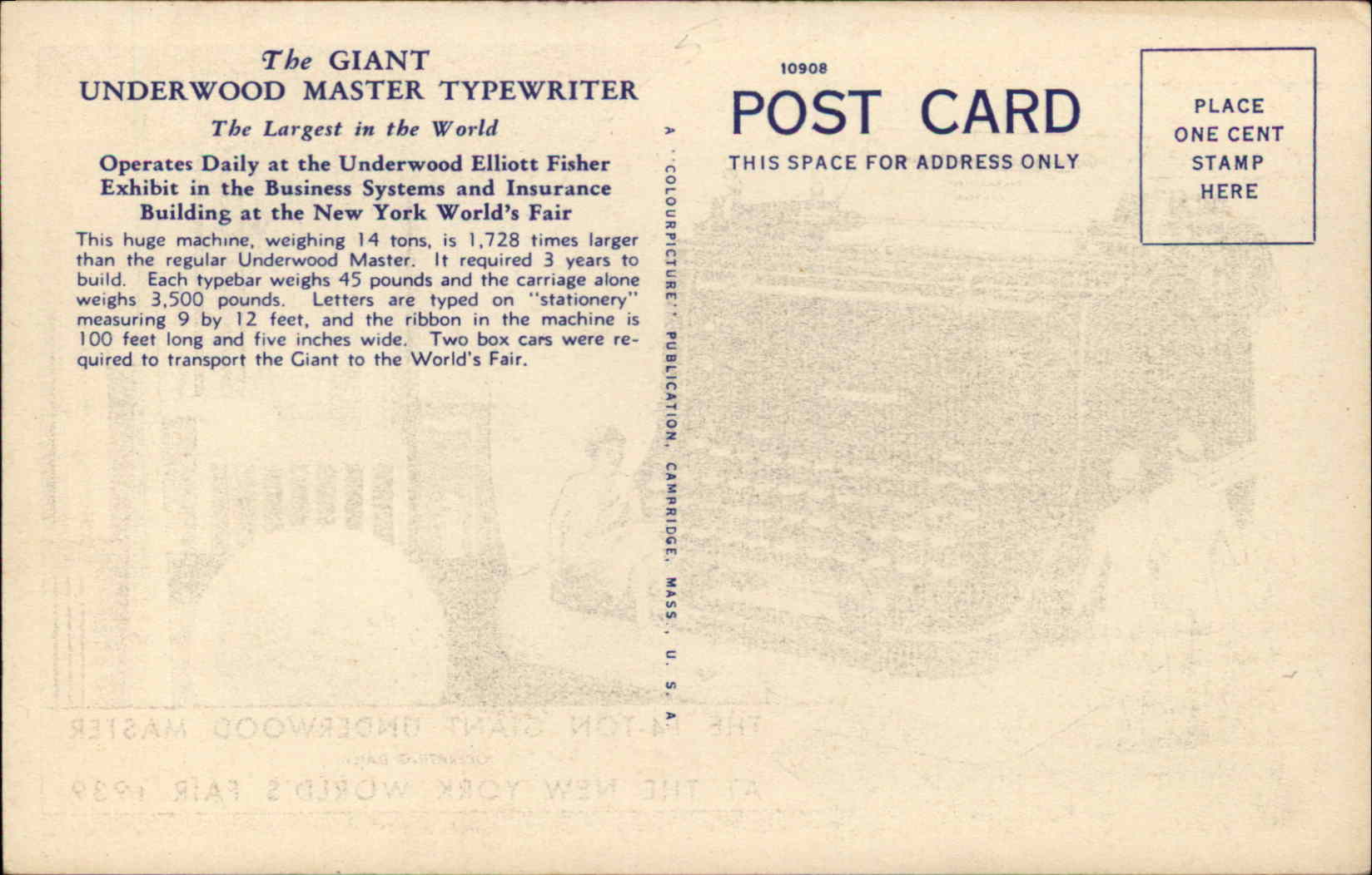 New York City New York NY New York World’s Fair 1939 Typewriter Linen Postcard