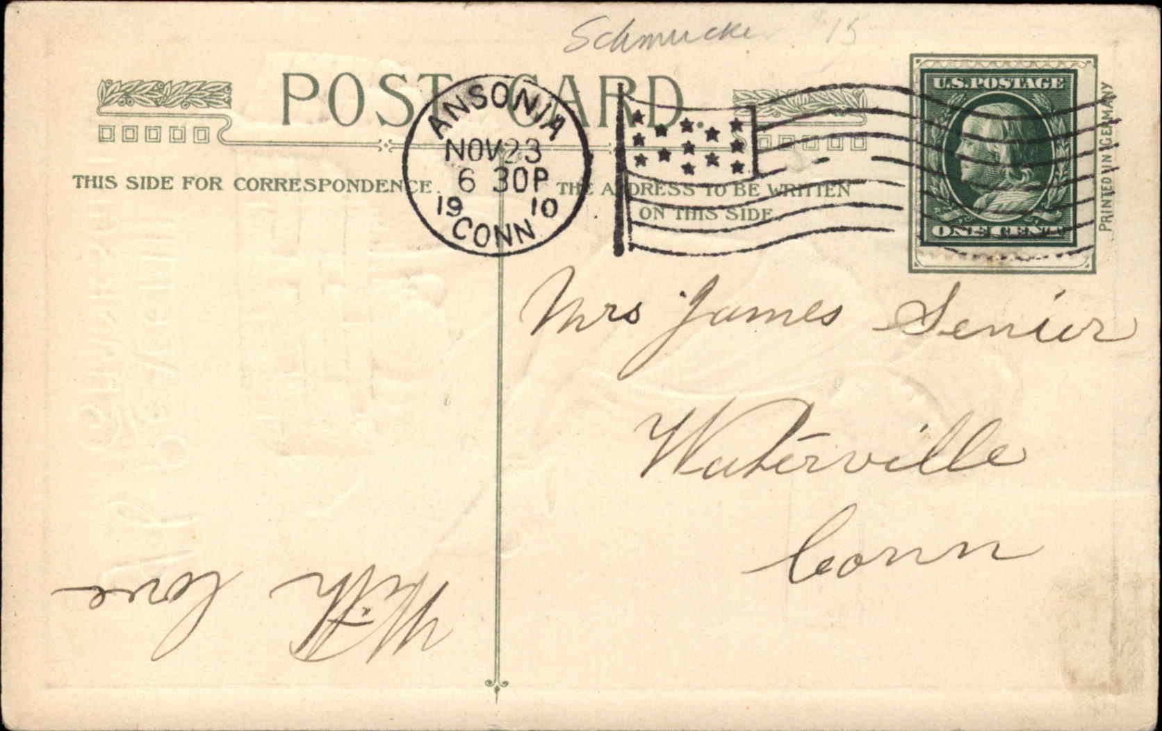 Thanksgiving Beautiful Woman Basket Gilt Embossed Winsch Postcard
